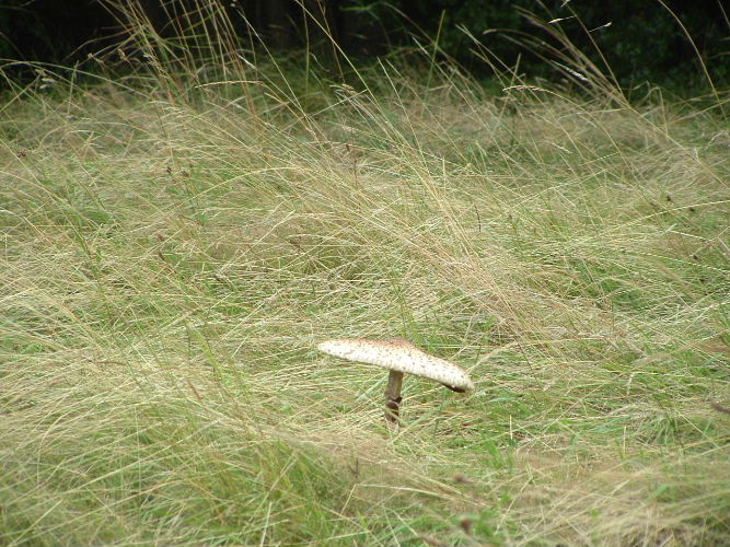 Que vois je la bas dans le pré ? repérées de la voiture alors que je suis à un feu rouge : des lépiotes !